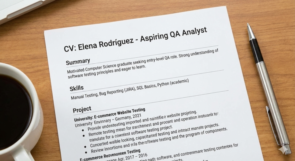 Tu primer trabajo como QA Tester sin experiencia se consigue con un CV que demuestre tres cosas: conocimiento técnico real, iniciativa personal y capacidad de aprendizaje. Los proyectos personales son tu experiencia laboral cuando no tienes historial.